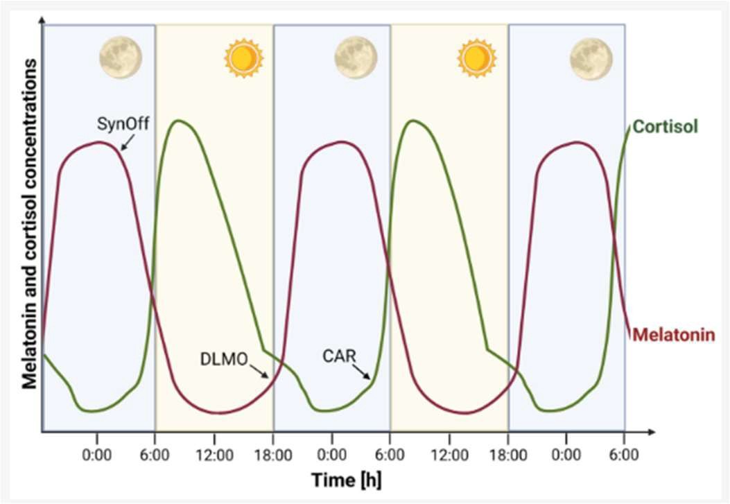 (Figura tratta da Skubic C., Zevnik U., Nahtigal K.,Grošelj L. D. (2025). Circadian Biomarkers in Humans: Methodological Insights into the Detection of Melatonin and Cortisol. Biomolecules, 15(7), 1006)