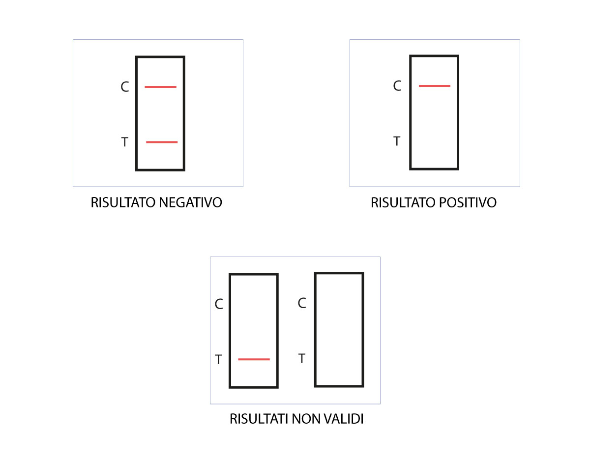 NOTA BENE: la presenza, anche minima, di una linea colorata nell'area (T) è da considerarsi come risultato negativo se associata a linea colorata nell'area (C).