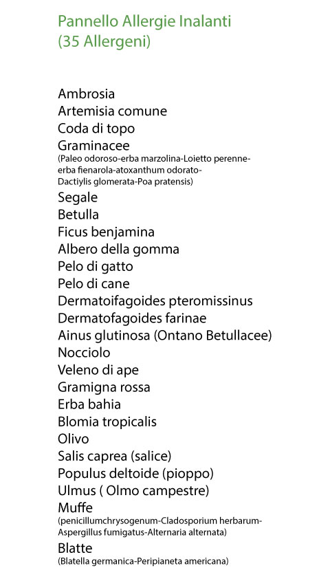 - Allergie Inalanti (Allergeni di 35 sostanze inalanti).